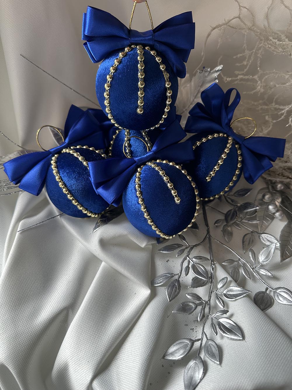 Mavi Kadife Yılbaşı Çam Ağacı Topu