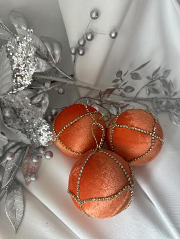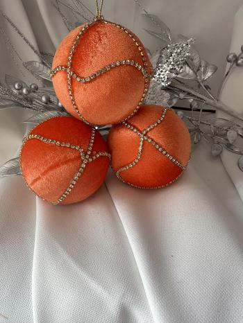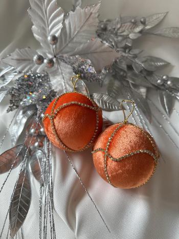 Turuncu Çam Ağacı Süsü - 8 Cm Kadife Yılbaşı Çam Ağacı Topu