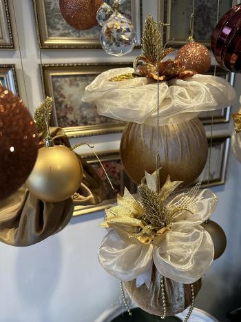 Londra dan gelen özel kumaşlarla hazırlanan  yılbaşı ağaç süsü toplarımız ile  kalpleri ısıtan modern ve zarafetin sıcaklığının buluştuğu büyülü bir yılbaşı atmosferini sizler için hazırlıyoruz. Krem tonlarının hakim olduğu yılbaşı ağaç süslerinin buluştuğu bu özel dekorasyonla; nostaljiyle modernliği bir araya getirerek asil bir tasarımla sizlerleyiz..