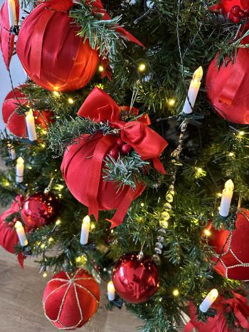 Londra dan gelen özel kumaşlarla hazırlanan  yılbaşı ağaç süsü toplarımız ile  kalpleri ısıtan modern ve zarafetin sıcaklığının buluştuğu büyülü bir yılbaşı atmosferini sizler için hazırlıyoruz. Kırmızı tonlarının hakim olduğu yılbaşı ağaç süslerinin buluştuğu bu özel dekorasyonla; nostaljiyle modernliği bir araya getirerek asil bir tasarımla sizlerleyiz..
