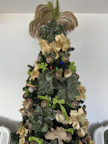 Krem Kadife  Üzeri Gold Süslü Taşlı 8 Cm Süs Toplar